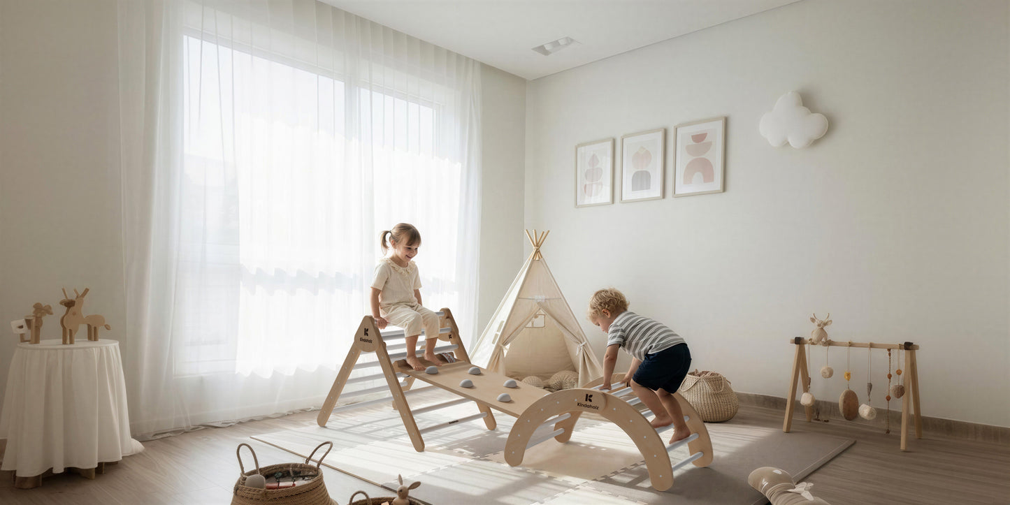 Unser Kletterspielzeug stimuliert spielerisch Koordination, Gleichgewicht, Kreativität und Selbstvertrauen und begleitet dein Kind von seinen ersten Schritten bis hin zu anspruchsvollen Herausforderungen.